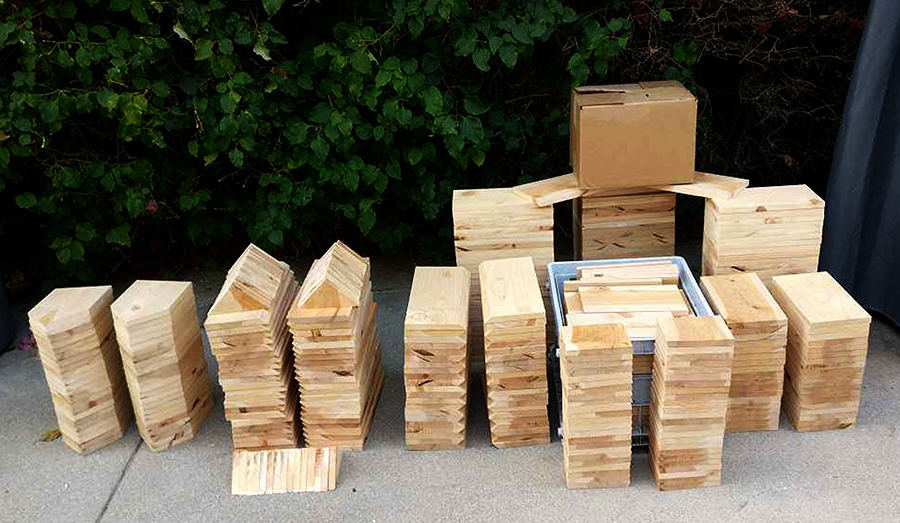 About a thousand cuts on the table saw to make the pieces for 43 birdhouse shaped mailboxes for the Westchester Community Garden (Taylor's Eagle Scout Project)
