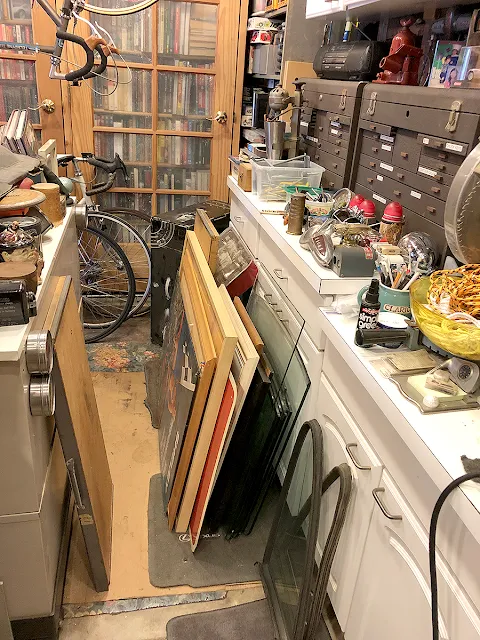 | A lot of the stuff in this aisle space was able to be moved under the flat file on the left of this picture (there's about 3 to 4 inches of space under it). |