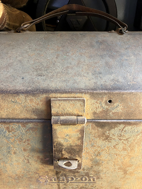 | Probably had a leather covered handle originally. Only the metal inner reinforcement is left (not sure if it's original). Even the "D" ring on the right side is missing. |