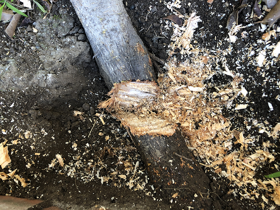 Also cut through the root on the other side of the bricks when it goes back into the dirt...